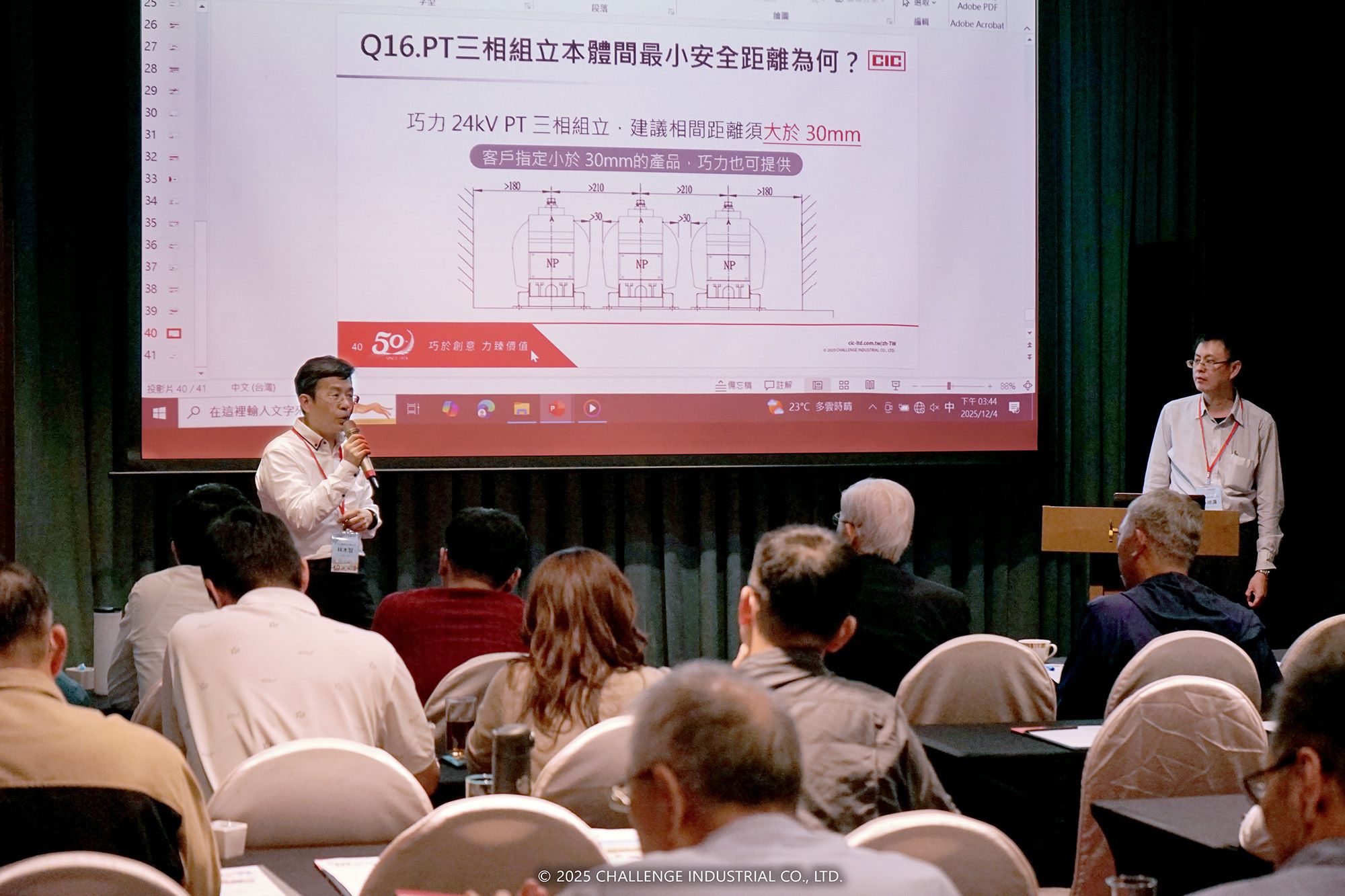 CIC (CHALLENGE INDUSTRIAL CO., LTD.) continuou sua Série Anual de Reuniões com Clientes com a sessão do Norte de Taiwan, que foi realizada com sucesso em Taipei no dia 13 de novembro. Profissionais dos setores elétrico, eletrônico e eletromecânico, incluindo engenheiros e técnicos do Norte de Taiwan, participaram do evento. A atmosfera foi envolvente e colaborativa, aproveitando a interação positiva e o feedback recebidos da sessão do Centro de Taiwan.