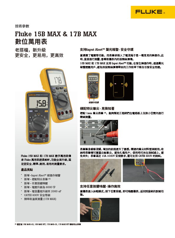 Fluke 15B MAX 經濟型數位萬用表和Fluke 17B MAX 數位萬用表 使用手冊(中)