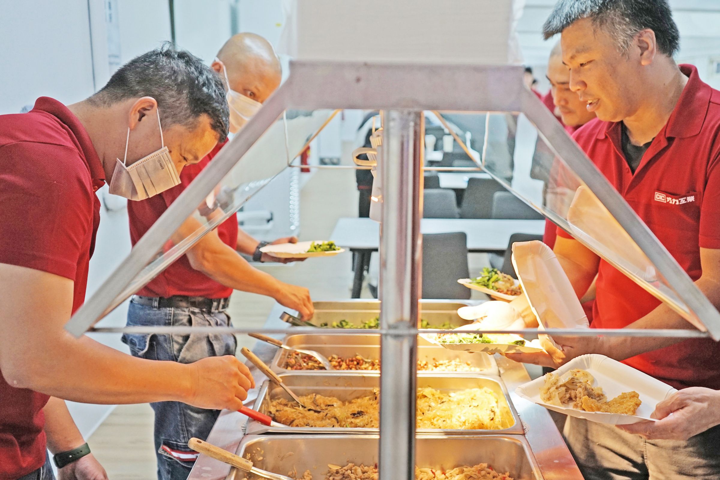 為協助同仁在工作日中維持良好的體力與精神狀態,餐廳提供穩定的午餐安排,餐點內容包含主菜、配菜與湯品等完整搭配,菜色每日有所變化,讓員工能規律享用一頓完整的午餐。