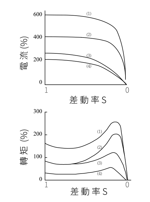 註:(1) Is、Ts:全壓起動之起動電流與起動轉矩。 (2) I’s、T’s:採用啟動器後之起動電流與起動轉矩。