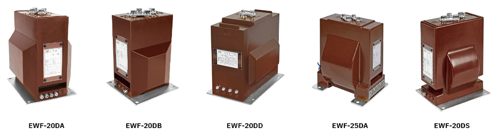 模注比流器 EWF-10D 系列廣泛應用於 12 kV 或以下變配電系統,屬配合量測儀表及保護電驛使用之雙鐵心比流器,以 Araldite® epoxy resin (環氧樹脂) 模注絕緣,可符合各種法規,具有抗濕、絕緣優異、機械強度高等特點。